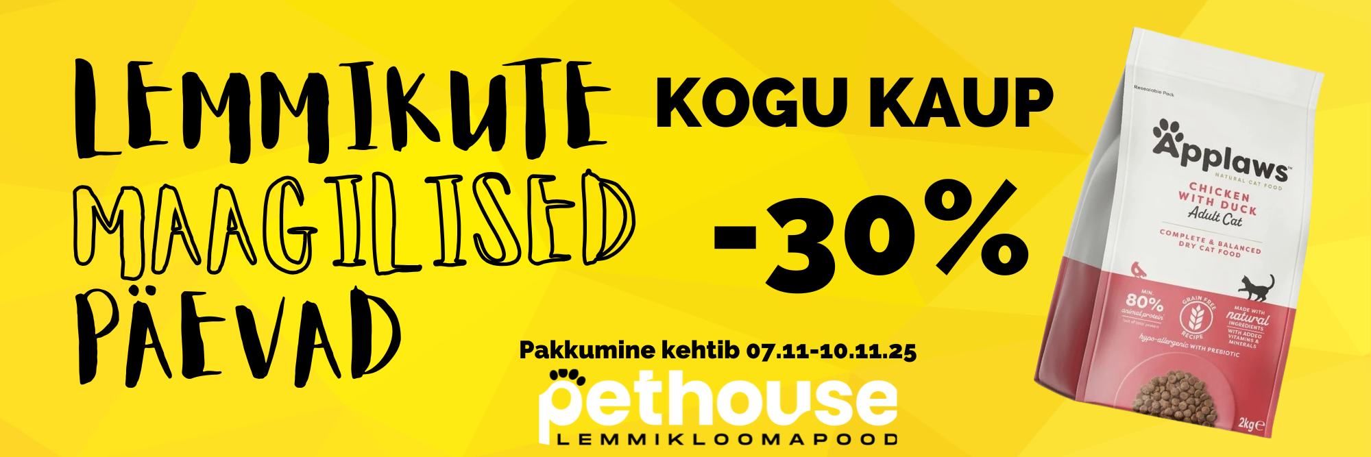Pethouse.ee on Eesti oma lemmikloomapood, mis on loodud armastusest loomade vastu. Meie veebipood on avatud ööpäevaringselt, et saaksid vajadusel oma lemmikule alati parimat pakkuda – olenemata ajast ja kohast.